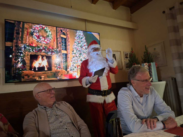 Aus gelebter Tradition gab es zwischendurch kleinere Geschichten und Anekdoten. Höhepunkt der diesjährigen Feier war aber der Weihnachtsmann, der als Überraschungsgast für eine humorvolle und weihnachtliche Stimmung sorgte. Zu seinen Ehren wurden sogar die alten Weihnachtslieder "O Tannenbaum" und "Leise rieselt der Schnee" gesungen. So wurde es wieder eine sehr gelungene, harmonische Feier zum Jahresausklang.