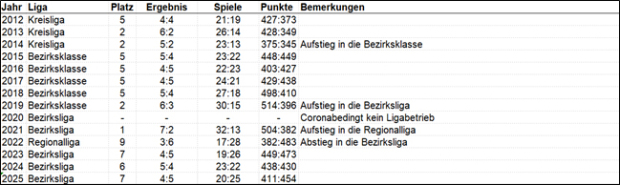 Rückblick auf die Ligasaison 2012 bis 2025