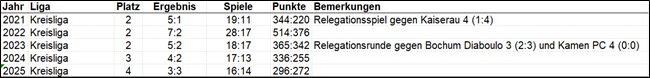 Team 1 spielt am Sonntag, dem 19. April 2026, in Duisburg-Wanheim um den Austieg in die Bezirksklasse Ruhrgebiet. Gegner sind Duisburg-Homberg 2 und Essen-Kettwig 6.