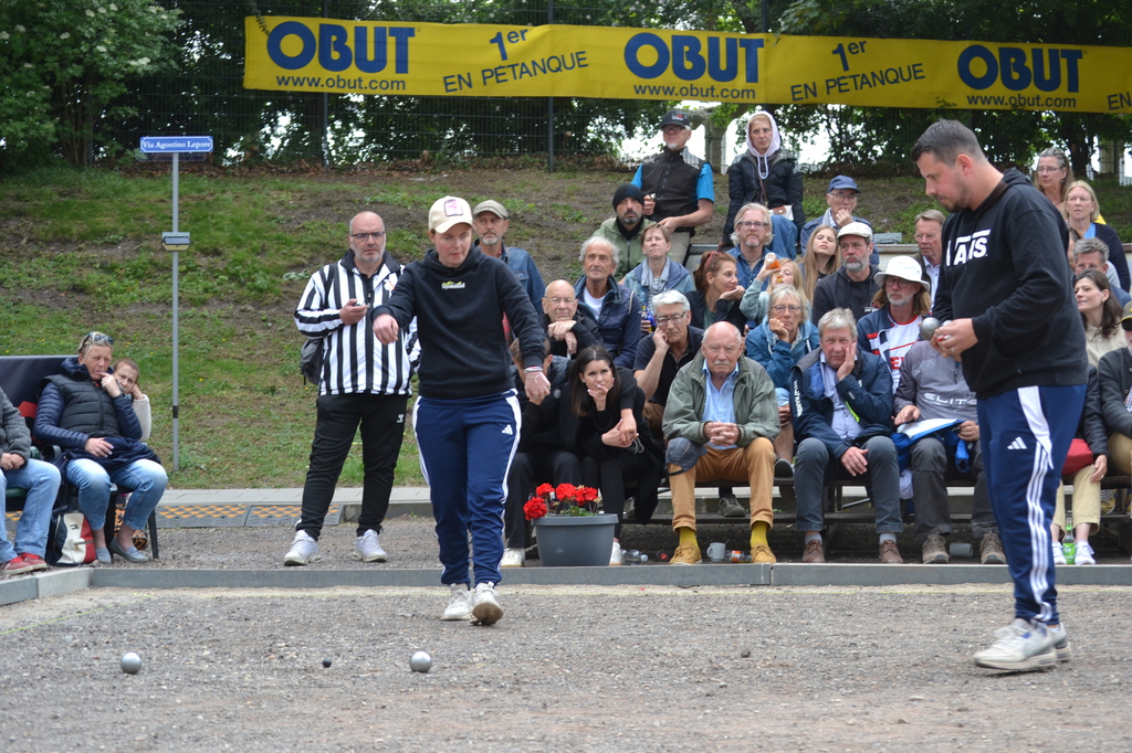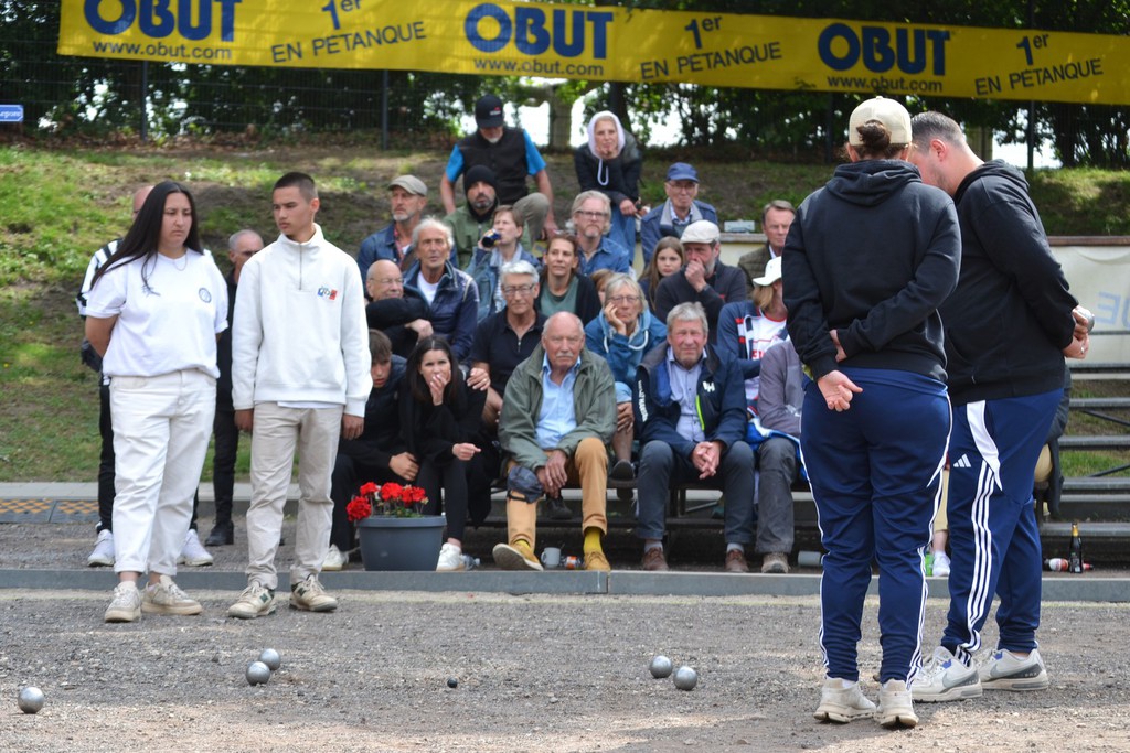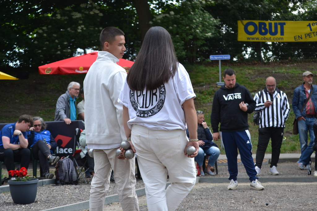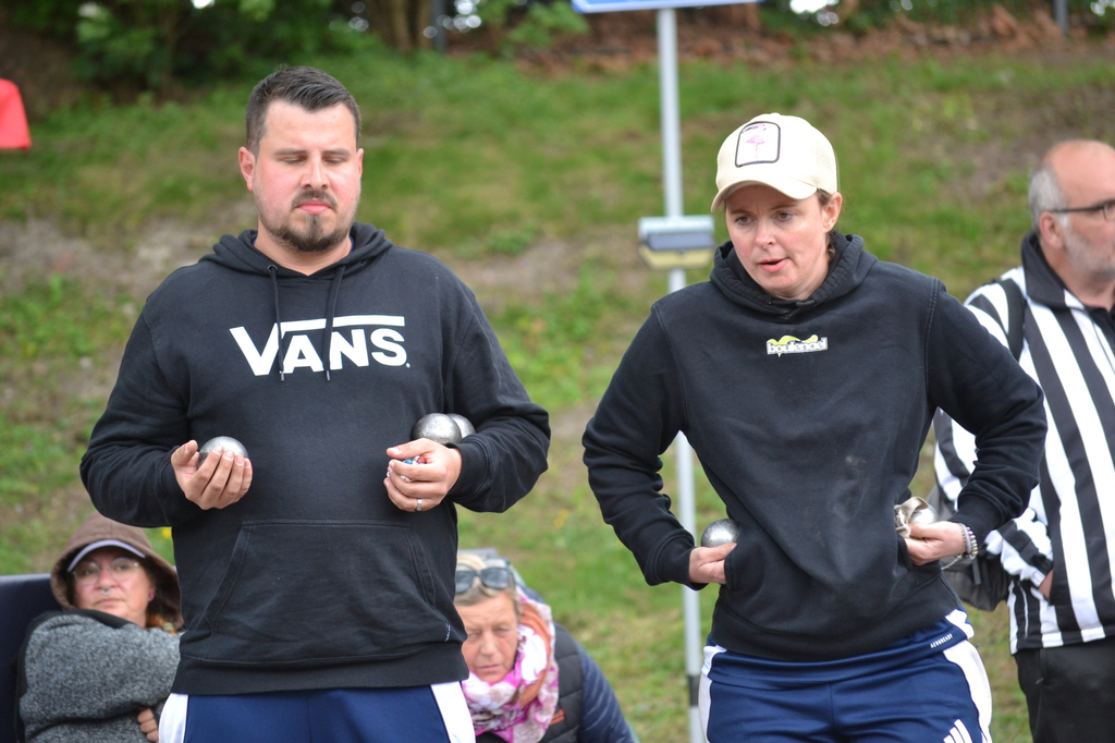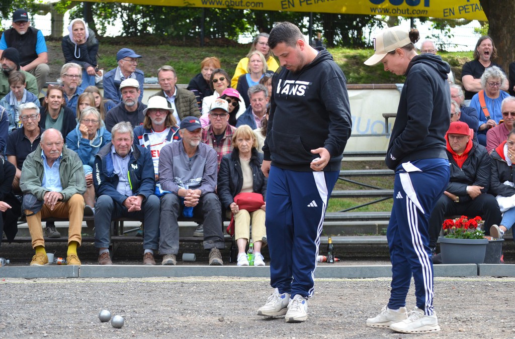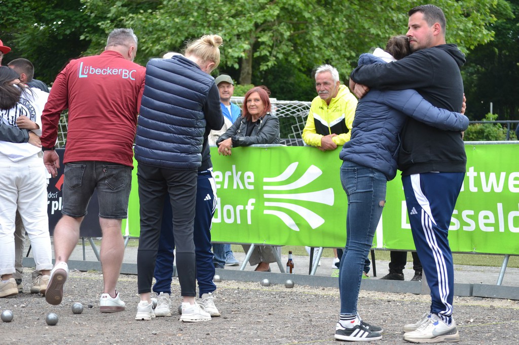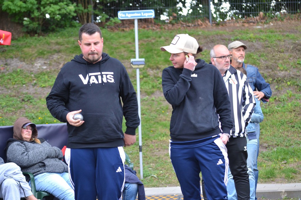 Am Samstag und Sonntag, dem 17./ 18. Mai 2025 fanden in Düsseldorf sur Place, Pariser Str. 45, 40549 Düsseldorf die Deutschen Meisterschaften im Doublette mixte da. 128 Teams nahmen daran teil. Birgit Lübke/ Frank Gutberger (Gelsenkirchen Balistique) hatten die Teilnahme bei der Landesmeisterschaft in Ratingen-Lintorf leider knapp verpasst. Dennoch war dieses Event eine gute Gelegenheit die deutschen Spitzenspieler hautnah zu erleben. So machten sich einige Saarner auf den Weg nach Düsseldorf und erlebten ein spannendes und hochemotionales Finale, dass Eileen Jenal/ Justin Neu (Saar 01) gegen Anna Lazaridis/ André Skoba (BaWü 01) nach hartem Kampf mit 13:8 für sich entscheiden konnten. Dritte der Deutschen Meisterschaften wurden Domino Probst/ Matthias Laukart (BaWü 02) und Kerstin Lisner/ Sylvain Ramon (NRW 22).