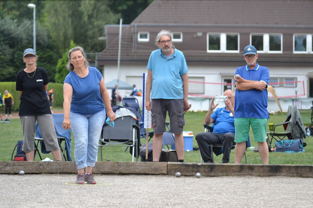 dabei. 15 von 49 Teams konnten sich für die Landesmeisterschaft qualifizieren. Die Deutsche Meisterschaft ist am 13./14. September 2025 in Berlin-Tegel geplant. Gespielt wurden 5 Runden á 75 Minuten plus 2 Aufnahmen. Drei Saarner Teams konnten sich für die Landesmeisterschaft in Köln PCC qualifizieren. Birgit Lübke/ Britt Ullrich (Bochum Diaboulo)/ Angelo Evangelio (Gelsenkirchen Balistique) wurden mit 5:0 Siegen Bezirksmeister. Petra Droll/ Ralf Moritz/ Thomas Dinkelbach wurden mit 4:1 Siegen Dritter und Martina Reh/ Richard Krajewski/ Rainer Engler mit 3:2 Vierzehnter.