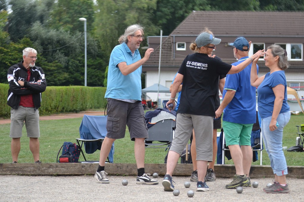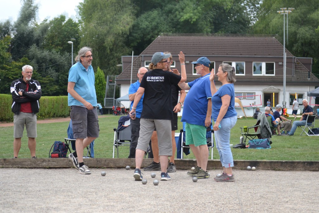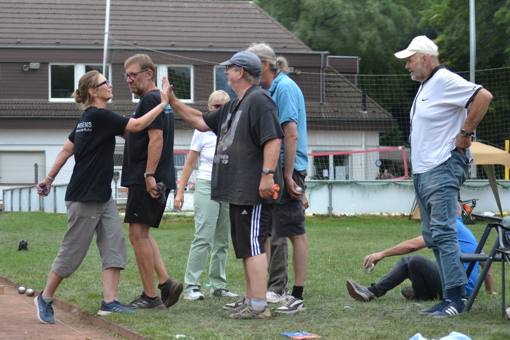 Am Sonntag, dem 11. Mai 2025, fand bei herrlichem Sommerwetter ab 10:00 Uhr auf unserer Anlage der 10. Mülheimer TeamCup Pétanque statt. Die Turnerschaft Saarn als Ausrichter bot ab 8.45 Uhr wie in all den vergangenen Jahren zum Frühstück wieder leckere, belegte Brötchen und Kaffee an. Darüber hinaus war ganztägig im Vereinsheim für ein Catering gesorgt (Gegrilltes, Hirtensuppe, Kuchen u.a.). Auch Getränke waren hier wieder zu zivilen Preisen erhältlich.