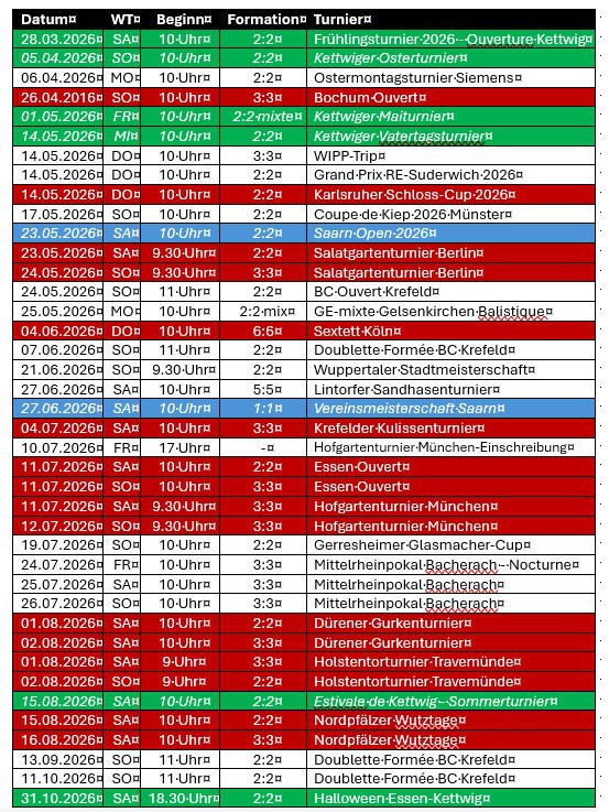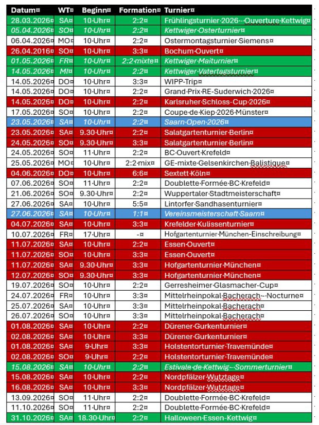 Turnierkalender 2026