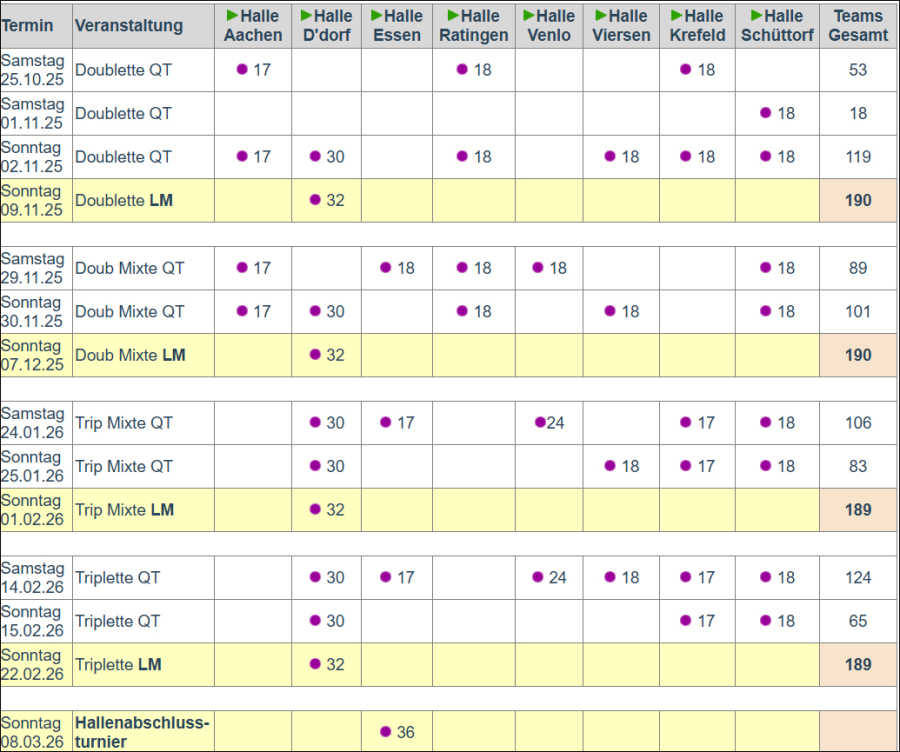 Die Termine für die Meisterschaften und Liga 2026 könnt ihr der folgenden Tabelle entnehmen.