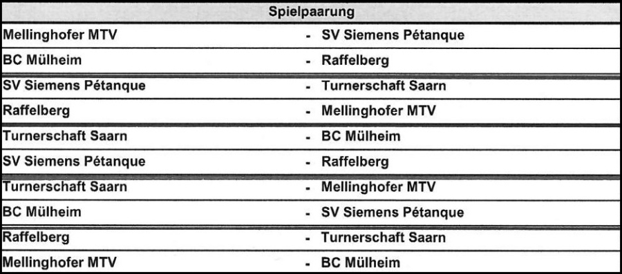 Der diesjährige TeamCup Pétanque findet am Samstag, dem 25. April 2026, ab 10 Uhr auf unserer Anlage statt. Nach Auslosung ergibt sich das beigefügte Tableau der einzelnen Begegnungen.