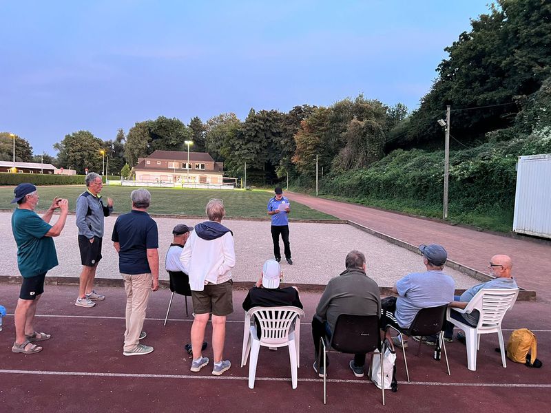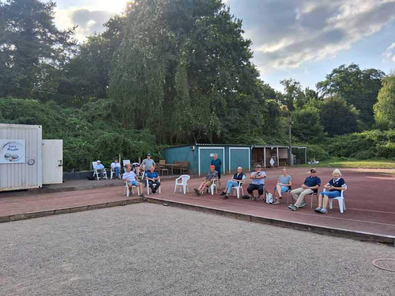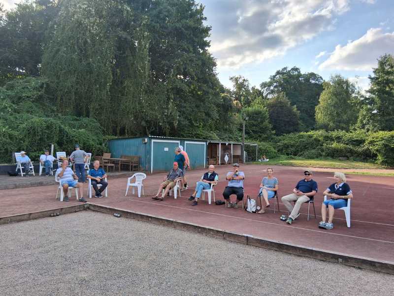 Eine kleine, aber feine Vereinsmeisterschaft im Tête-à-Tête, die erste seit 5 Jahren ging dann gegen 21 Uhr zuende. 10 Teilnehmer beteiligten sich an dem Turnier. Auch einige Zuschauer hatten sich eingefunden, um die Spiele zu beobachten und miteinander zu quatschen. Bei herrlichem, nicht zu warmen Wetter stärkte man sich gemeinsam nach den ersten beiden Runden mit Grillwürstchen und Kaltgetränken.